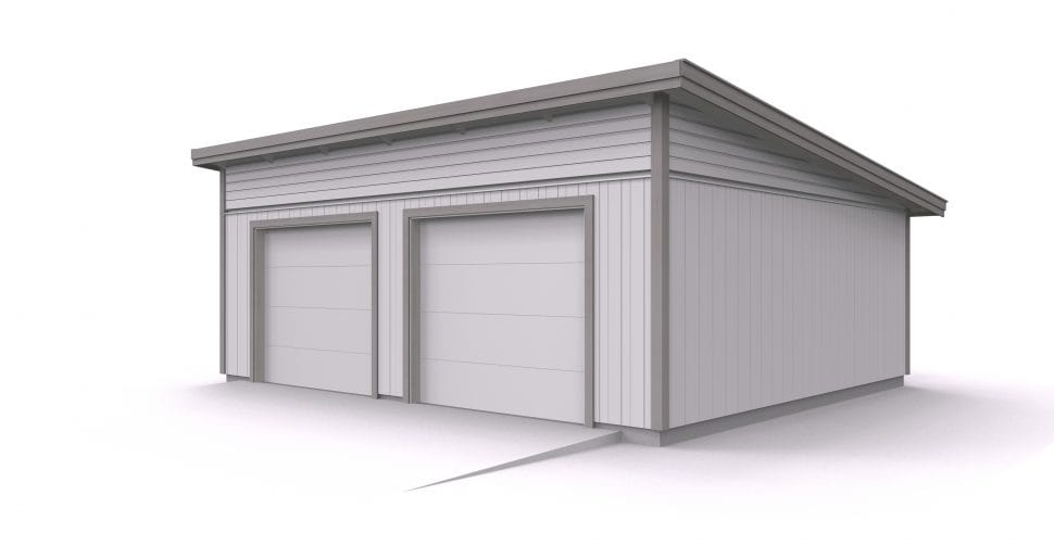 Dubbelgarage med låglutande pulpettak passar dig som vill hålla ner totalhöjden på din byggnad men samtidigt vill ha ett snyggt garage.